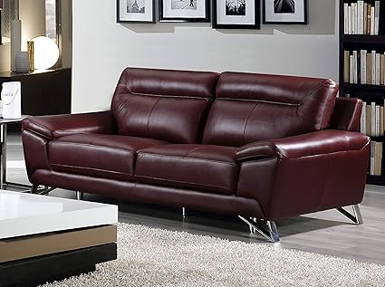 Cortesi Home Phoenix Genuine Leather Sofa Merlot
