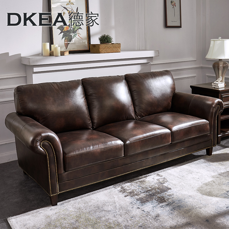 Stock Up5 20天denver皮艺沙发美式乡村实木真皮沙发厚皮别墅客厅大户型