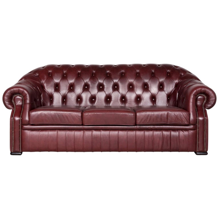 Chesterfield Leather Sofa Red Genuine Leather Three Seater Couch Vintage Retro
