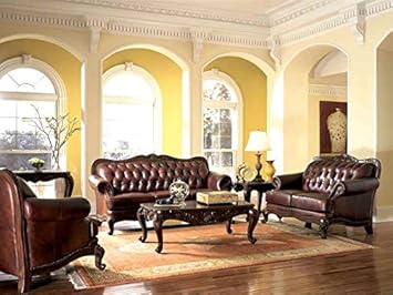 Amazon Com Victorian Style Leather Sofa Love Seat Chair