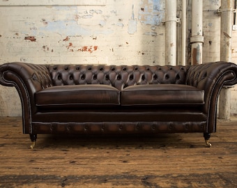 Chesterfield Kimberley Leather Sofa 3 Seater Antique Rust