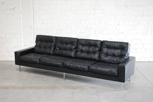 Vintage Black Leather 4 Seater Sofa From De Sede 1967