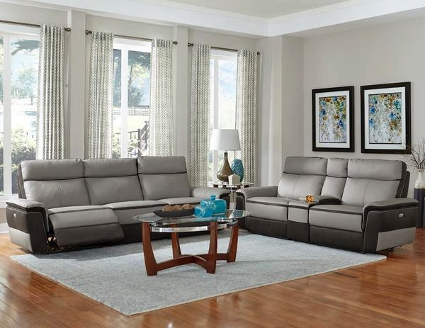 Homelegance laertes two tone power reclining sofa top grain leather fabric match light grey. Our leather sofas and sectionals come in a variety of styles and offer special details like distressed accents sleek nailhead trim or. Left arm facing reclining loveseat 1 recliner corner wedge right arm facing reclining console loveseat 2 recliners.